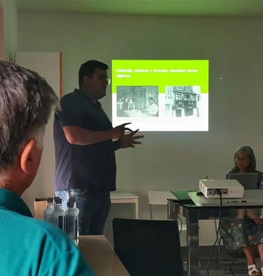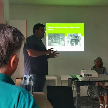 La profesora Lezcano, realizadora de una tesis sobre el Camiño Vello de San Andrés de Teixido, y Sergio Muíño , fundador de EUFUNDEVIVO, trabajan juntos en un artículo sobre los sanandreses.